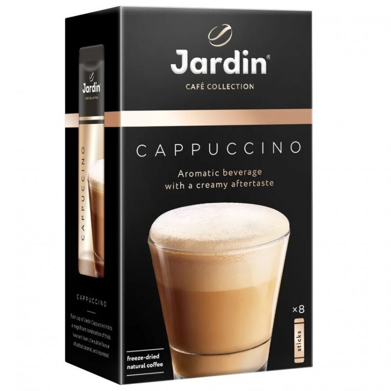 Читать все статьиКофейный напиток 3в1 Жардин Капучино (18гр*8шт)/10упак/кор